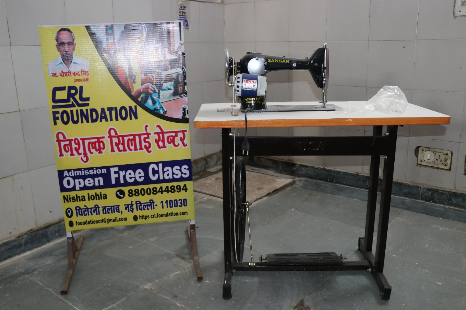 Nishulk Silai Center at CRL Foundation seems to be related to providing free sewing machines to women, likely under the PM Free Silai Machine Yojana.